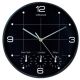 Orologio da parete con ottimo contrasto visivo grazie ai numeri bianchi su fondo nero. Particolarmente indicato per reception, mostra 4 differenti fusi orari (New York, Londra, Tokyo. Efficiente meccanismo al quarzo. Struttura in plastica con protezione in vetro. Alimentazione: 4 batterie AA 1,5V (incluse. Made in China.