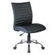 Poltrona a schienale basso rivestita in PU. Base in acciaio con ruote in nylon. Meccanismo oscillante bloccabile. Senza braccioli. Larghezza fuori tutto cm 46 Larghezza seduta cm 46 ProfonditA' cm 53 Altezza cm 89/99 H. seduta cm 45-55.